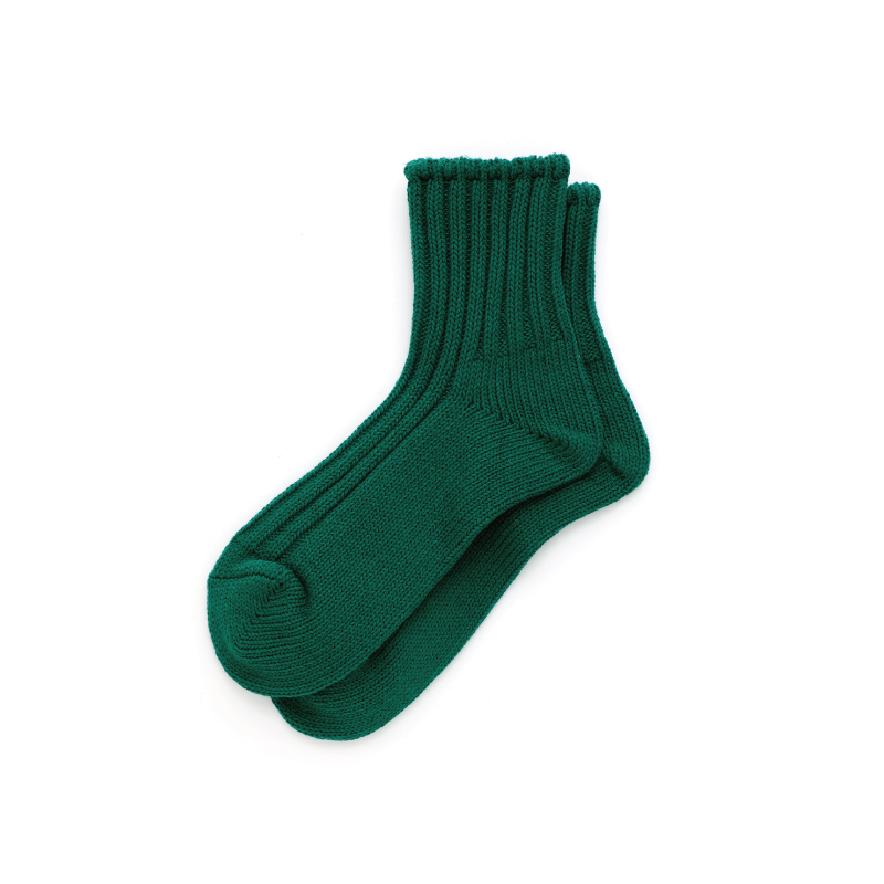 アパレルブランド「FUJITO」ディレクションによる、ショートタイプのローゲージソックス。リサイクルコットンを使用し、日本の染色工場で染めたエコフレンドリーな素材の靴下。サイズ:25cm~28cm。