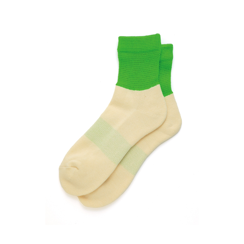 アパレルブランド「FUJITO」ディレクションによる、春夏に最適なネオンカラーのショートタイプの靴下。ふくらはぎはゆったり編み立て、甲部分はサポートを入れることでフィット感を増しています。サイズ:23cm~25cm。