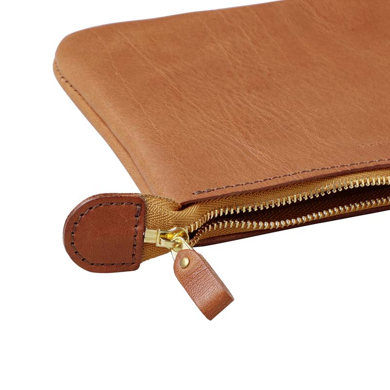 小物の整理に便利なファスナーポーチ。植物性タンニン鞣しの革は経年変化を楽しめ、長く使えるのが特徴です。様々な用途でお使いいただけるシンプルさも、長く使えるポイントです。