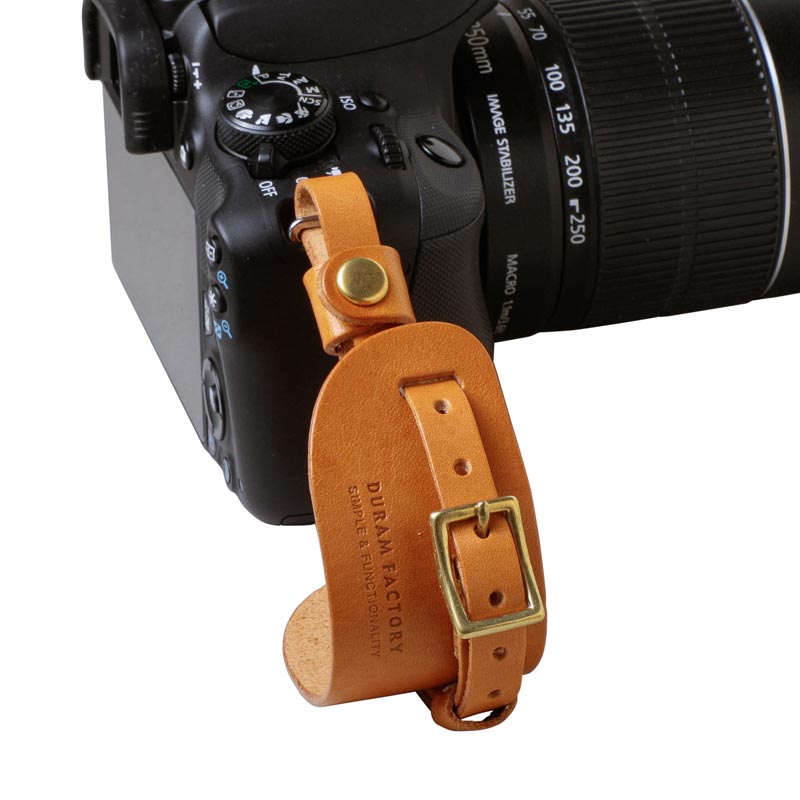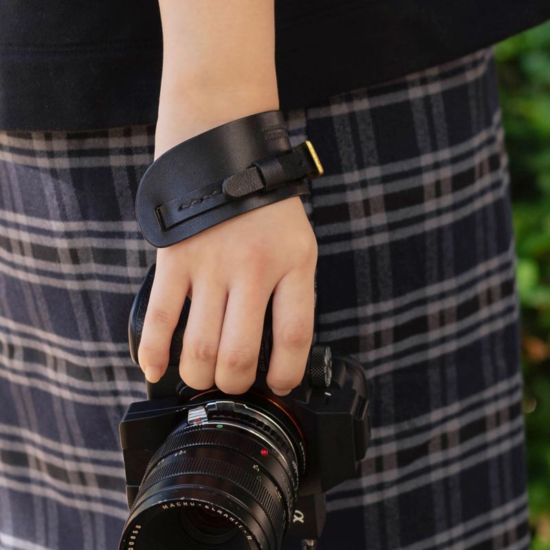 植物性タンニンで鞣した上質な革を使用したカメラ用ハンドストラップ。手をカメラに縛り付けず、一箇所で固定するので自分好みにホールド感を調整できます。手に通すだけで安定感が増し、撮影時の不安を軽減します。