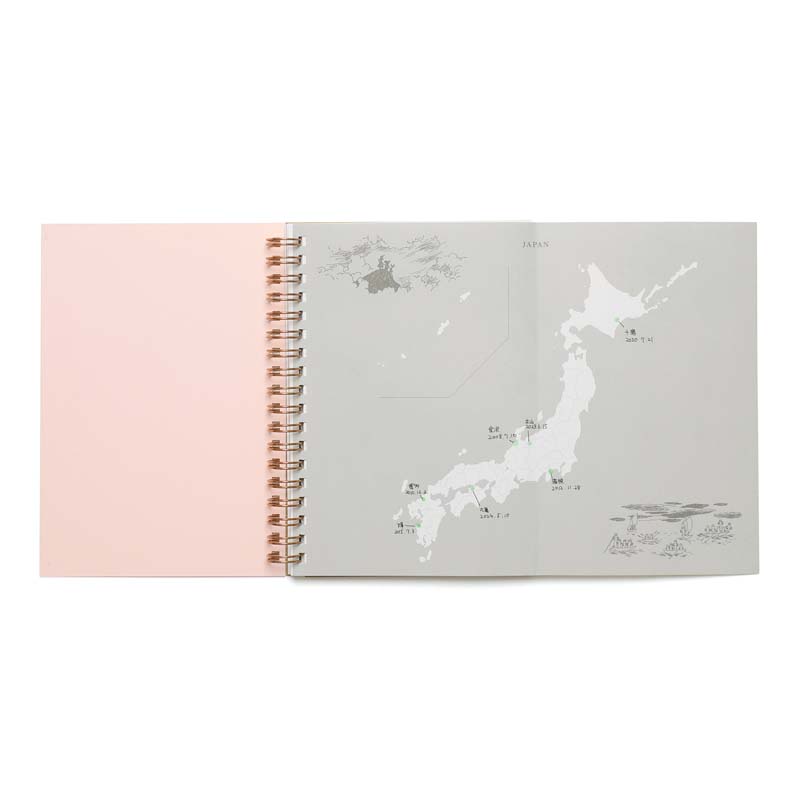旅先で見つけたお気に入りのスタンプを押して楽しめる、スタンプ専用ノート。見開きの地図やTODOリスト付きで、旅行の計画や思い出の記録にもぴったり。自由にアレンジできる一冊です。