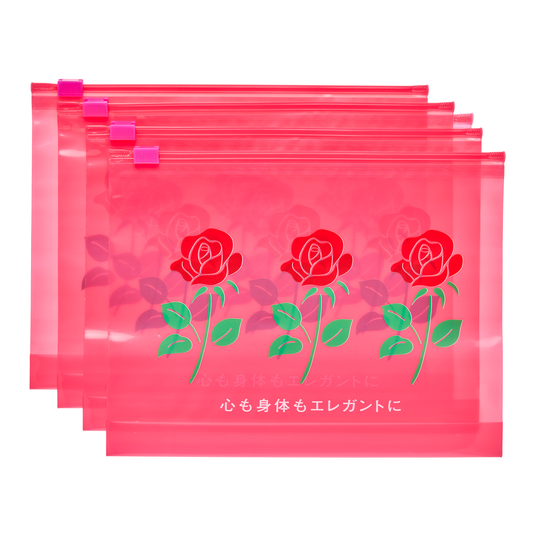 収納力抜群の大きめサイズのジッパーバッグ、4枚セット。旅行や出張など、幅広いシーンで活躍してくれます。やや厚手の素材に、開け閉めが簡単なスライド式のジッパー、底マチ付きなど機能性も十分です。