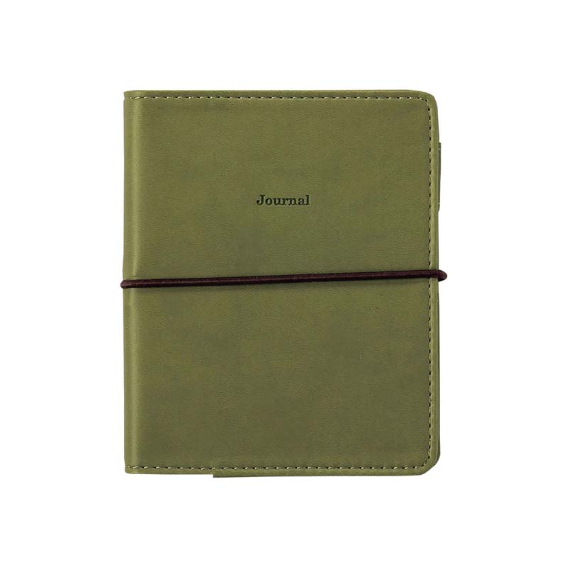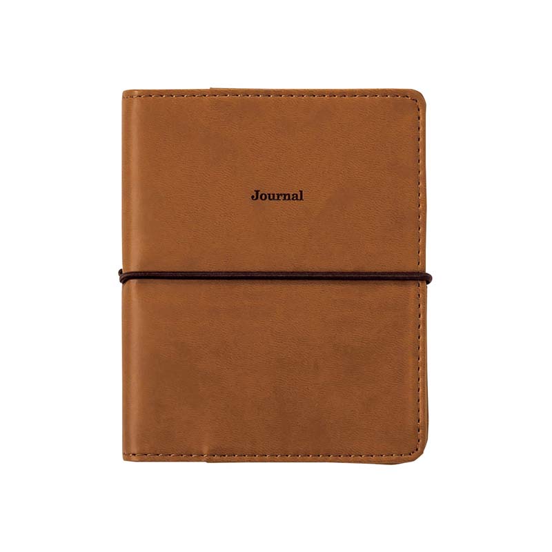 なめらかな質感のPU生地を使用した、ゴムバンド付きダイアリーです。