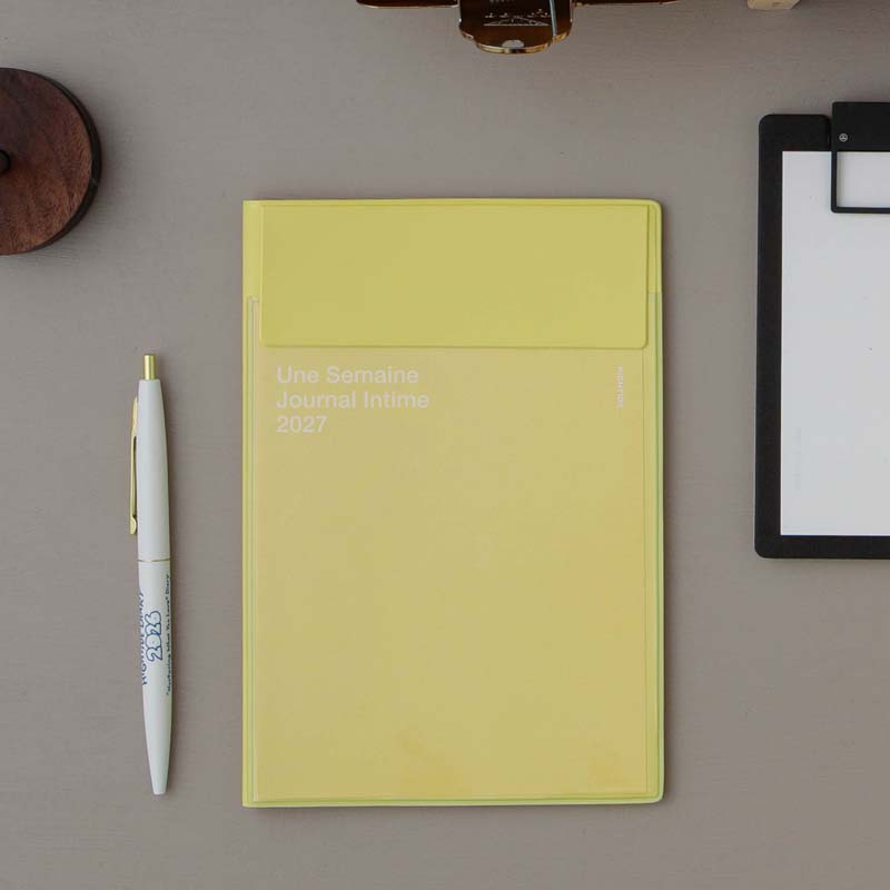 シンプルなデザインのポケット付きダイアリー。差し紙はカバーと同色でトーンを統一しています。