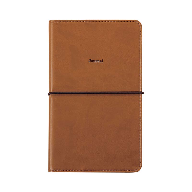 なめらかな質感のPU生地を使用した、ゴムバンド付きダイアリーです。