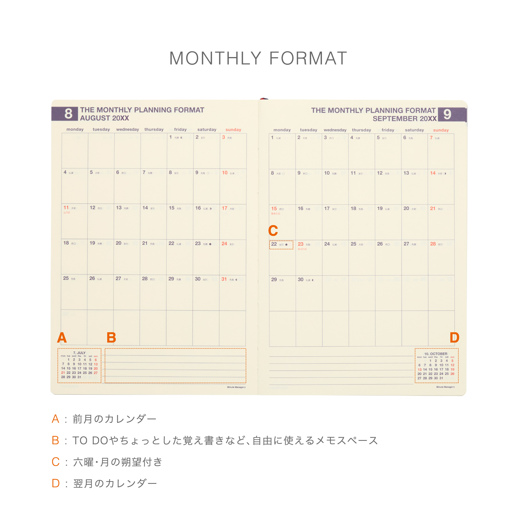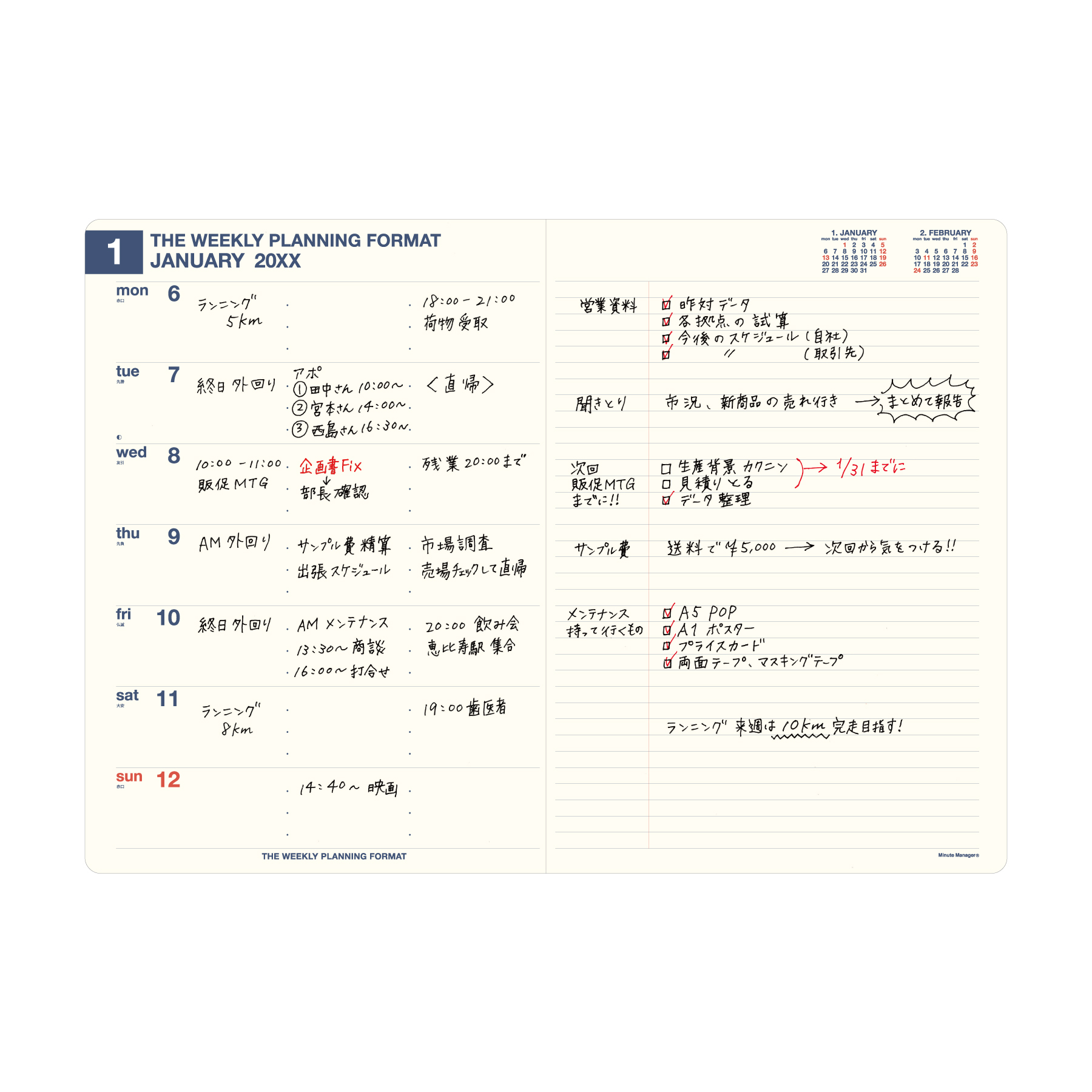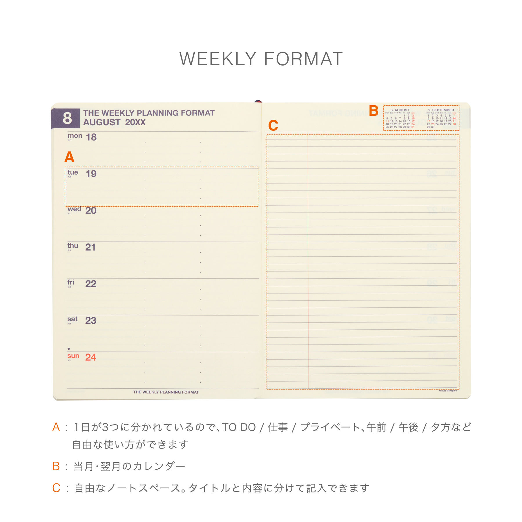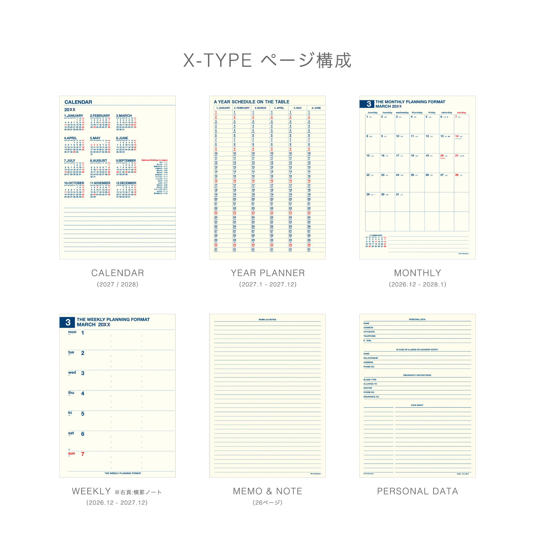 | 内容 | 160ページ(カレンダー、年間スケジュール、月間スケジュール、週間スケジュール、ノート、パーソナルデータ) |