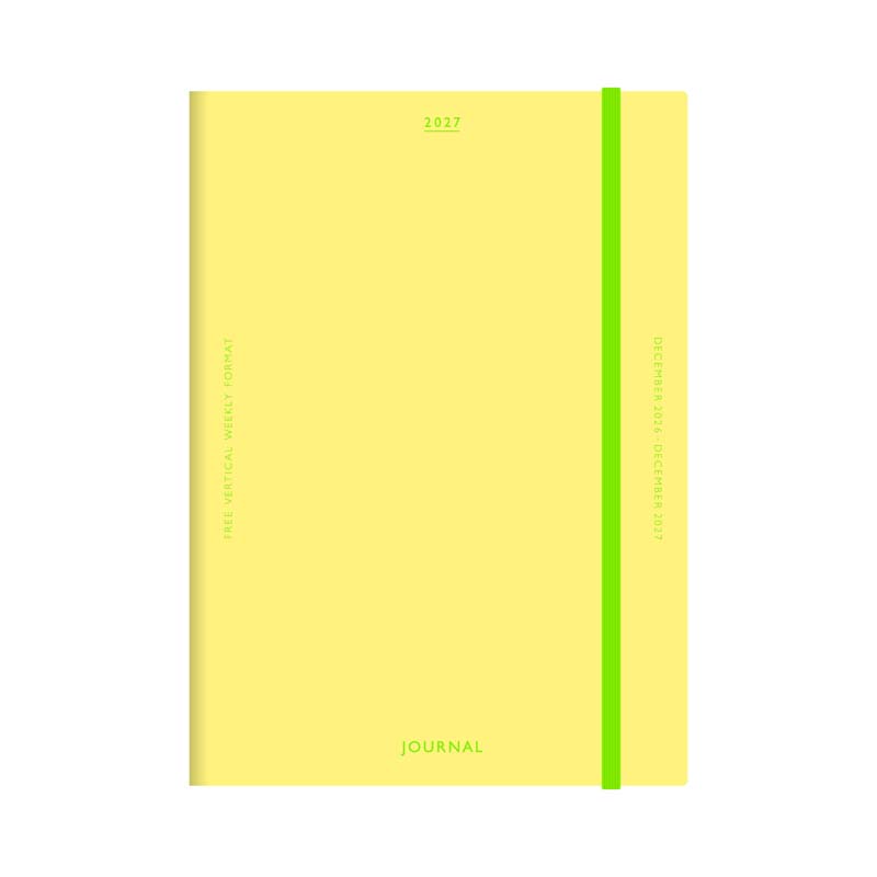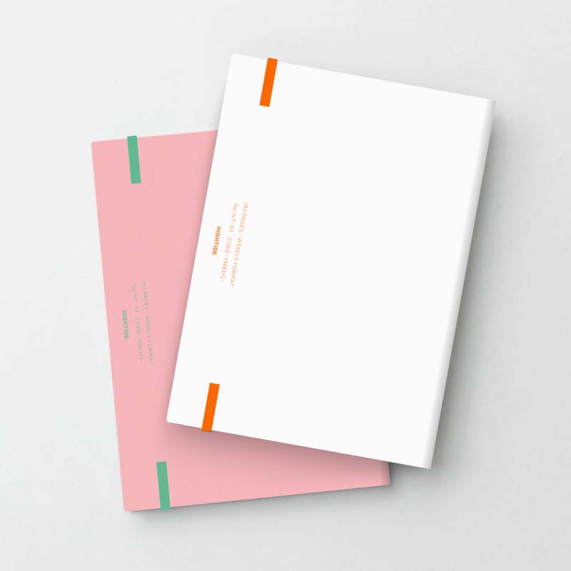ビニールペーパー素材を使用した、ゴムバンド付きダイアリー。表紙のシャーベットカラーとロゴの配色がポイントです。