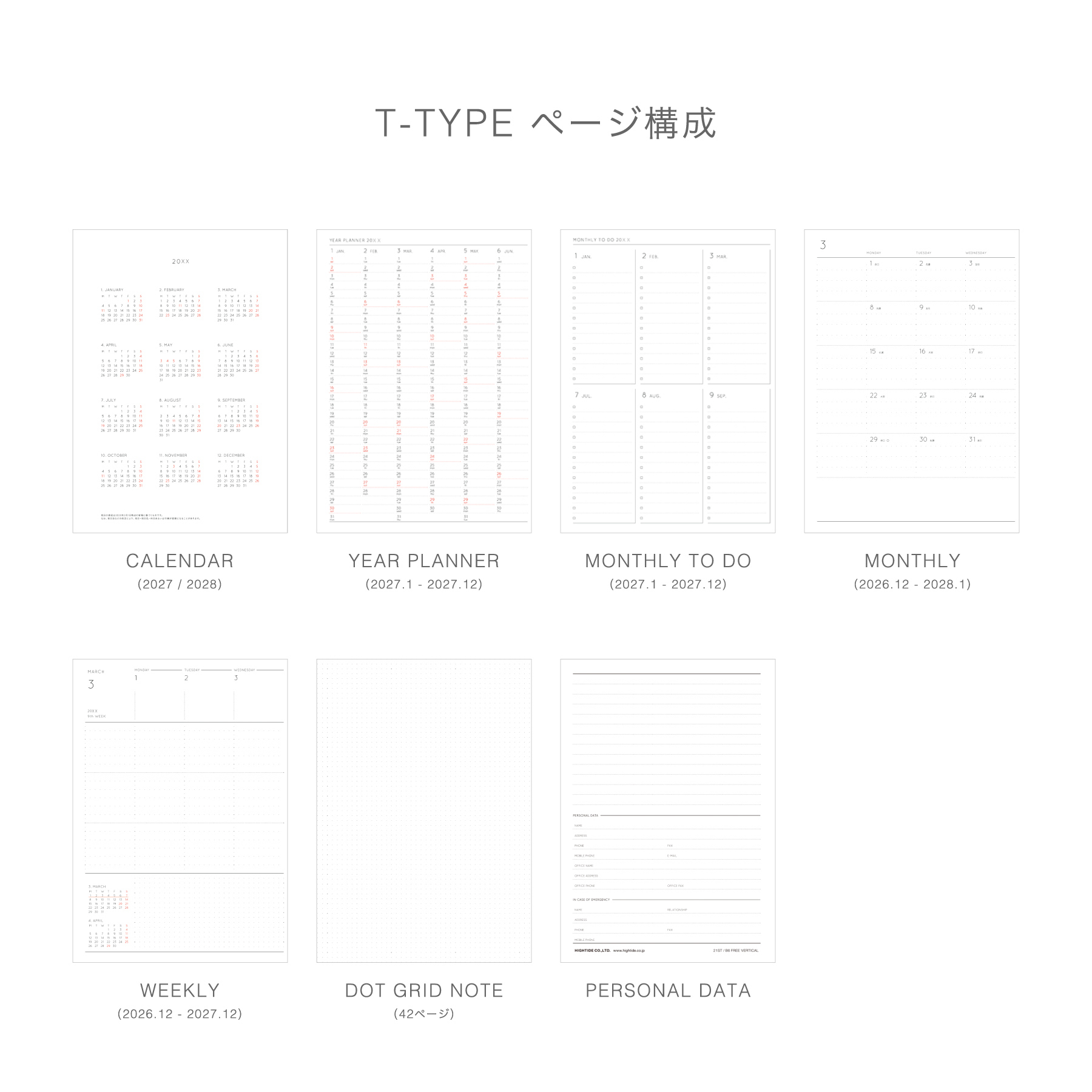 | 内容 | 192ページ(カレンダー、年間スケジュール、マンスリー TO DO、月間スケジュール、週間スケジュール、ノート、パーソナルデータ、月間インデックス) |