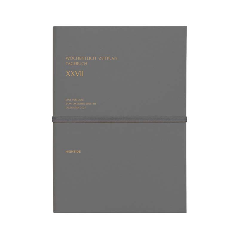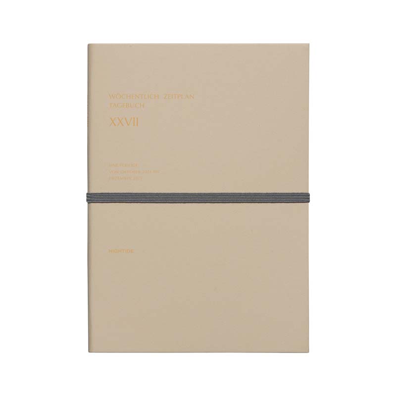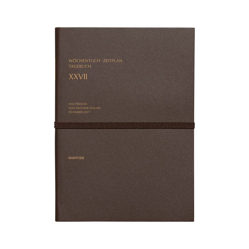 シックなデザインのゴムバンド付きダイアリー。落ち着いたカラーリングの表紙にゴールド箔を施しています。