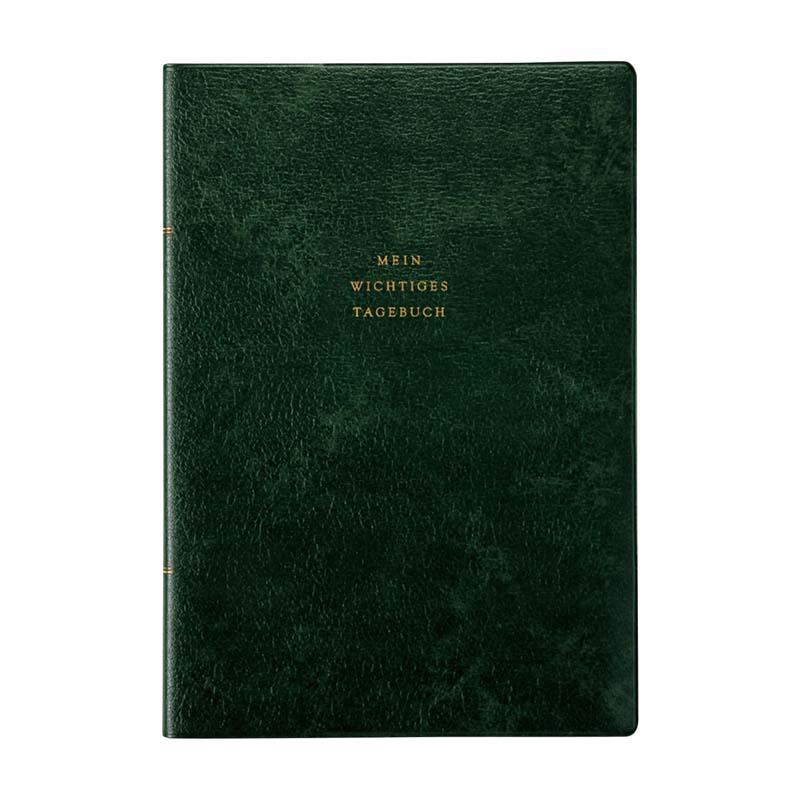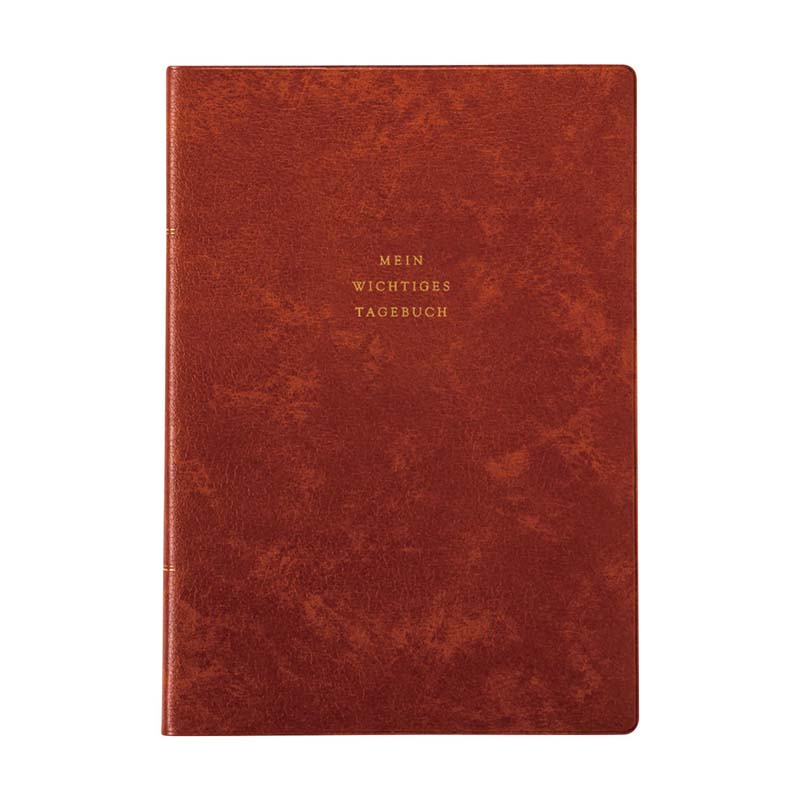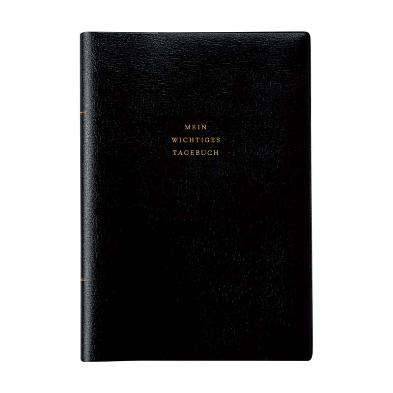皮革調のカバーにゴールドの箔押しを施した、上品な雰囲気のダイアリーです。