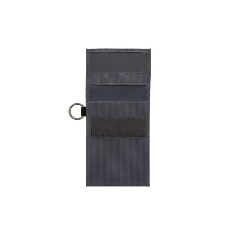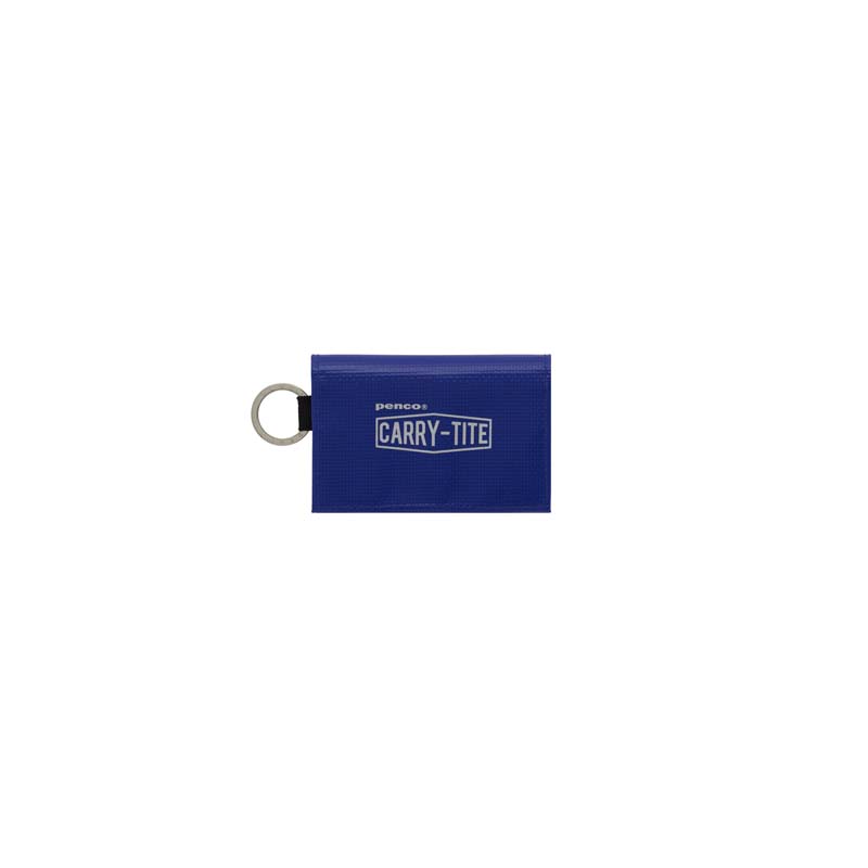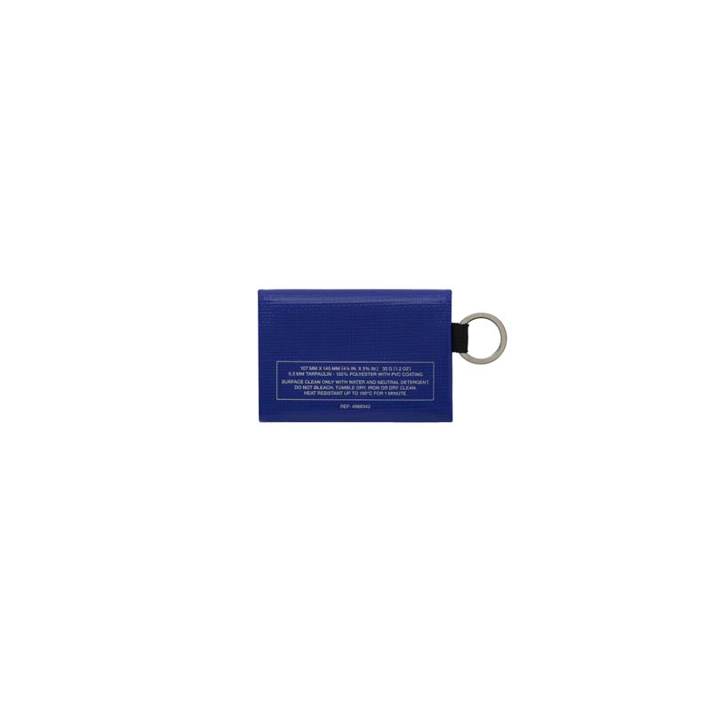 丈夫で防水性のあるターポリン素材を使用した2WAYケース。コインやカードは三つ折り、ペンやノートは二つ折りで2通りの使い方ができます。ストラップコード用の二重リング付き。